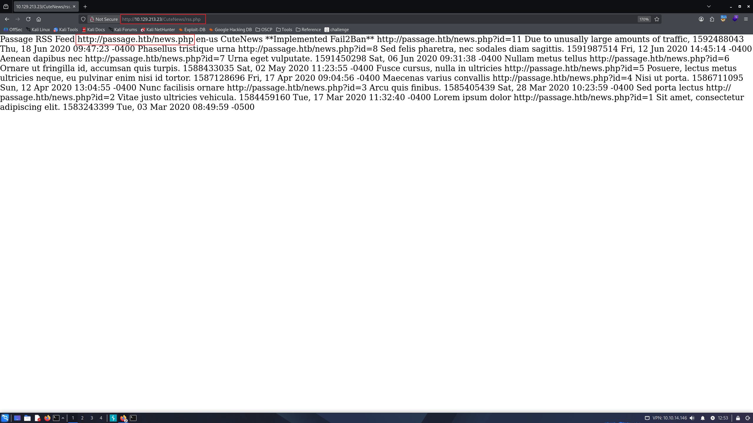 we can notice that site is built with CuteNews . If we click RSS button, we can verify this site’s domain name. I’ll add it to my /etc/hosts