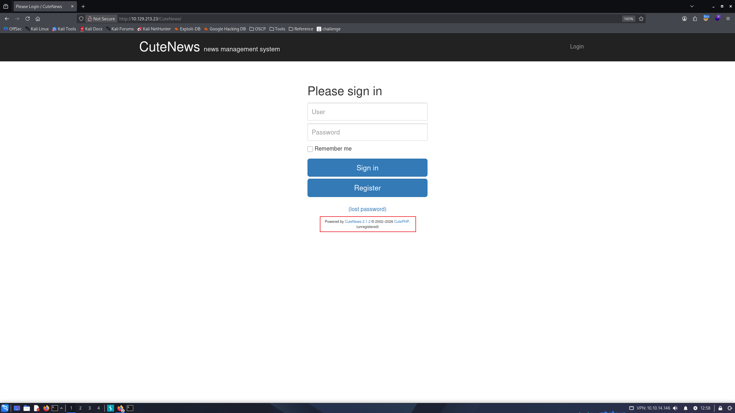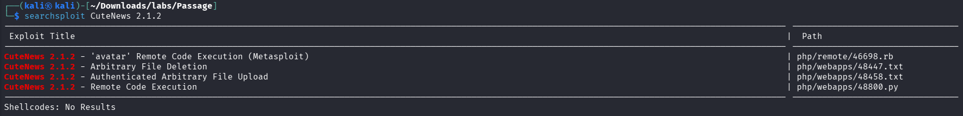 Since we know site is running with CuteNews 2.1.2, we can search for exploits in exploitdb, and can find