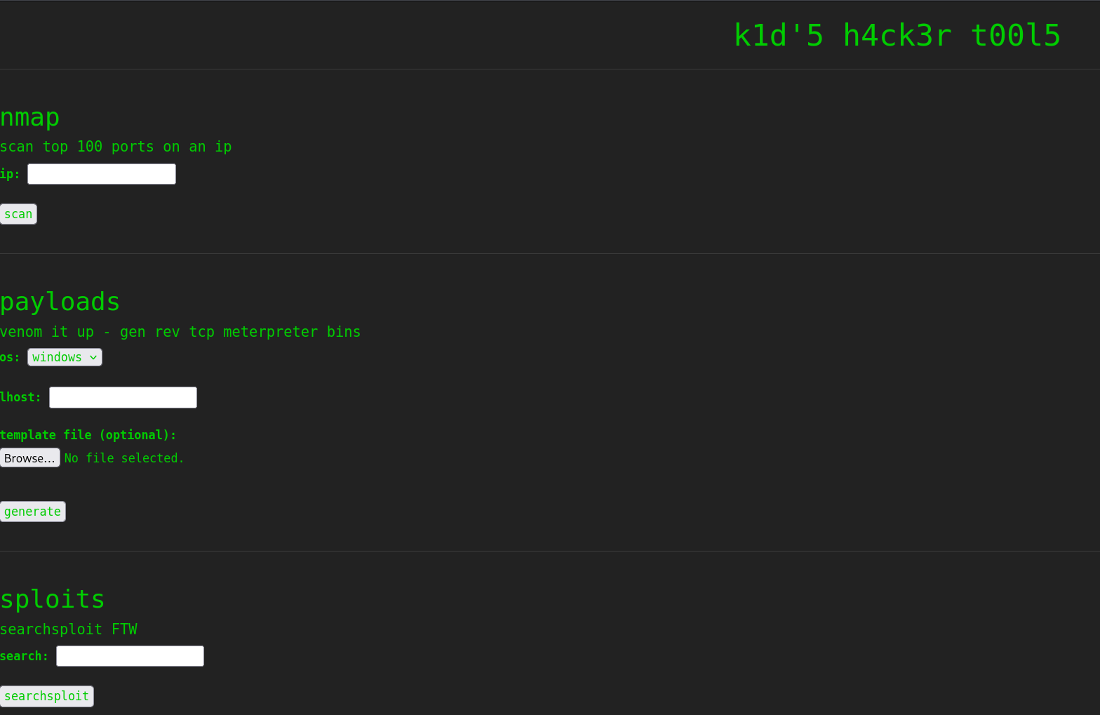 사용자의 입력값을 인자로 받아, nmap, msfvenom, searchsploit을 실행시키는 것 같습니다.