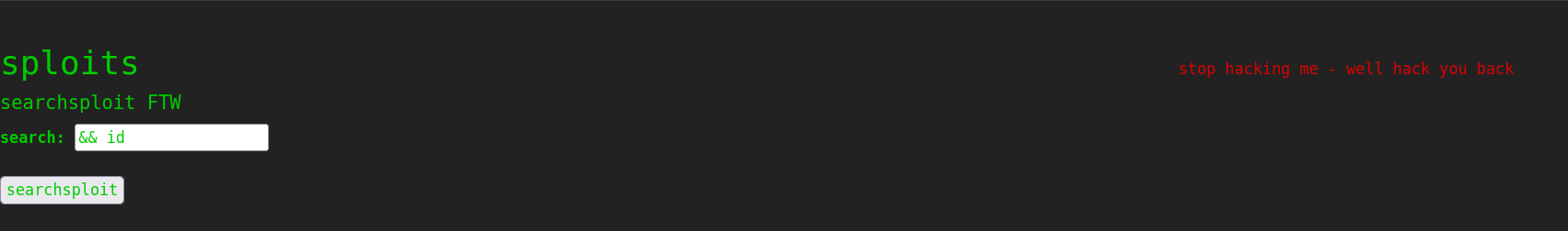 sploits 필드에 ;id, && id로 커맨드 인젝션을 시도해 보았지만, 필터링되어 작동하지 않습니다.